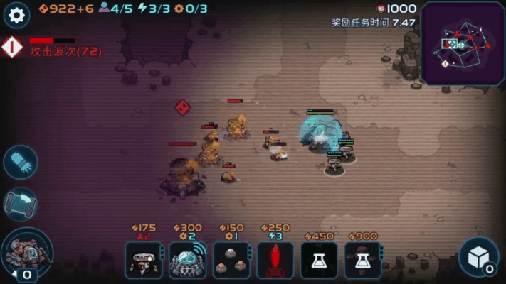 随着玩家不断游戏,会解锁更多的指令,一共有100多种指令,玩家可以对这些指令进行组合,从而发挥出更好的效果。玩家还需要在自己的基地中建造采集资源的建筑,顺利度过疲软的前期。玩家也可以控制军队寻找有资源的区域,来掠夺其中的资源。