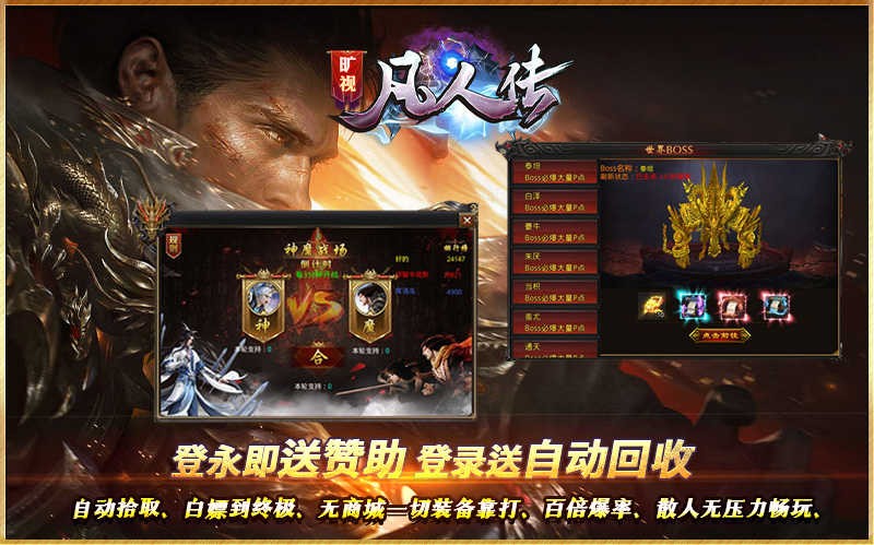 旷视凡人传是一款好玩的热血传奇对决类的游戏,在这款传奇游戏中玩家需要从一个凡人来慢慢的进行趣味的对决,不断的成长来学习新的职业和技能,自由的战斗,凭借自己超快的攻速来征战大大小小所有的副本,超爽的打击感,刀刀光柱,获取超多的福利装备
