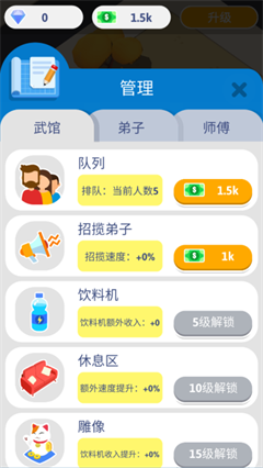 1、吸引更多学员,收取海量的学费,不断的升级扩大武馆。