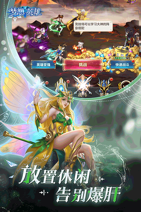 梦想英雄是一款非常好玩的策略卡牌游戏,游戏你玩家可以收集完成的英雄角色,这样就可以任意的搭配阵容了,轻松欢快的取得比赛的胜利,非常的有趣,除了收获胜利的喜悦之外还能获得大量的奖励,欢乐无限。