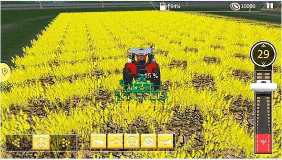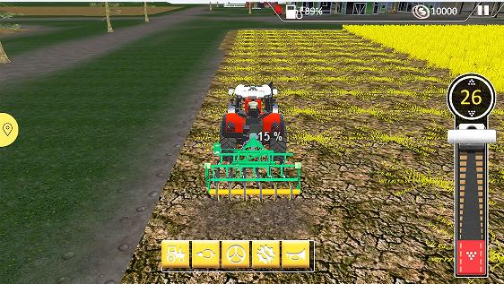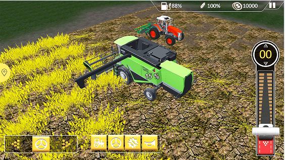 1、熟练驾驶拖拉机快速收割庄稼。有许多田地需要你管理,时刻关注作物的状态;
