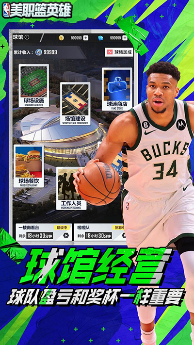 2、美职篮英雄这款Q萌不失动作体验的游戏,经过内购破解,游戏中的金币和钻石可以免费使用,任何阵容都可以自由调配,还能不断对球员进行升级,操作熟悉的球星在全服赛场上争夺第一