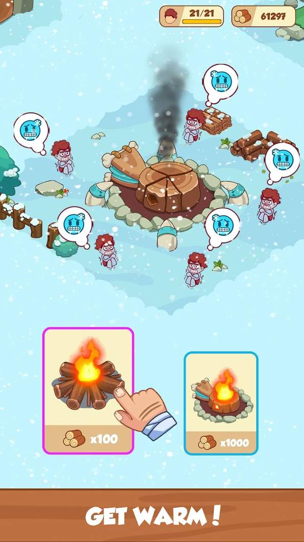 生存挑战:尽管资源无限,游戏依然强调生存的挑战。玩家需要在极端的寒冷环境下管理部落成员的生活,建设避难所,防止自然灾害,甚至应对猛犸象等冰河时代的巨大生物。