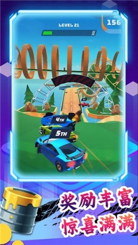 3、通过一次又一次地升级自己的赛车,创建自己的个性化赛车,并完成精彩的游戏挑战;