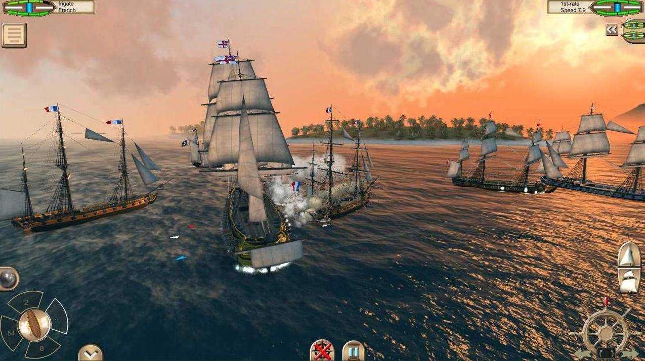 3、左上角船的标志可以购买各种船和军舰船,所以就需要不断的航海运输拉货,最后赚到更多的钱,才能和其他海盗们进行火力上的博弈,游戏整体感觉挺不错的,画质各方面都很好。