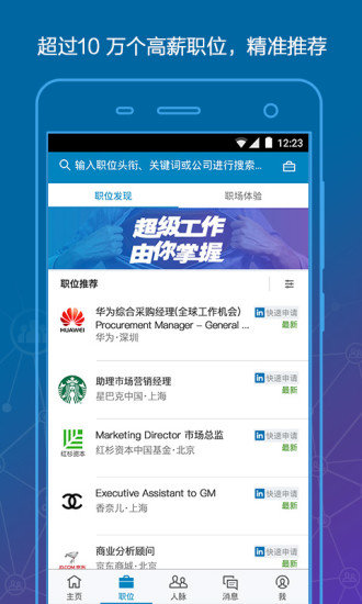 【海量高薪职位】高精准智能推荐,国内外各行业优质职位一键快速申请,名企offer轻松斩获。