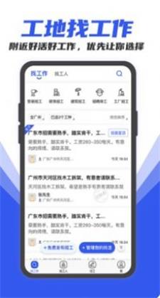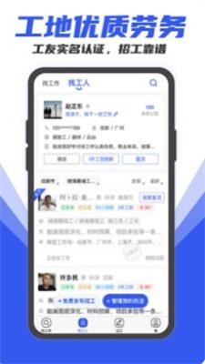 1、工地招工:发布招工信息,工种可以自定义设置,帮助您快速找到工人。