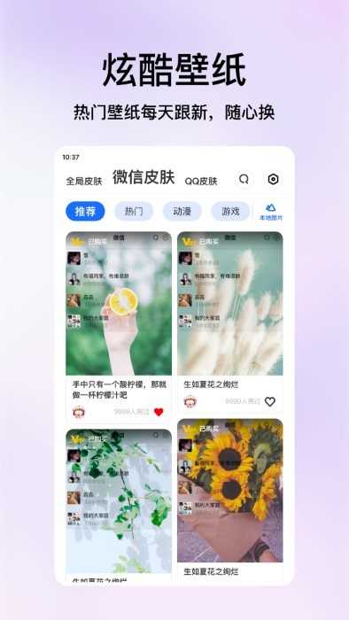 1、提供数以千计的主题壁纸,使画面风格多样化。