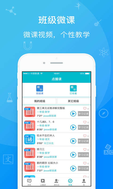5、沟通免费使用:学校通知、班级通知、老师作业通知实时推送,增加图片、声音,无需每月付费.
