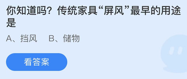 问题1-你知道吗?传统家具“屏风”最早的用途是?